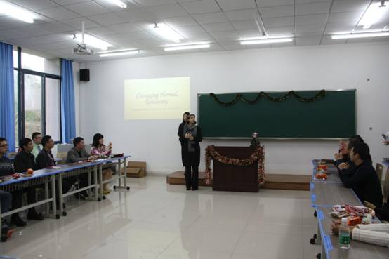 11月12日,学院特邀美国鲍尔州立大学的两位外教Tiffany Ellis和Shane Lanning来到学院与金融工程121国际交流合作班的同学们共同度过三周的愉快时光。课堂上,外教向同学们介绍美国文化,展示从美国带来的糖果、地图等实物;课后,师生一同前往朝天门、磁器口等著名景点,品尝当地美食,师生间建立了深厚的友谊。
