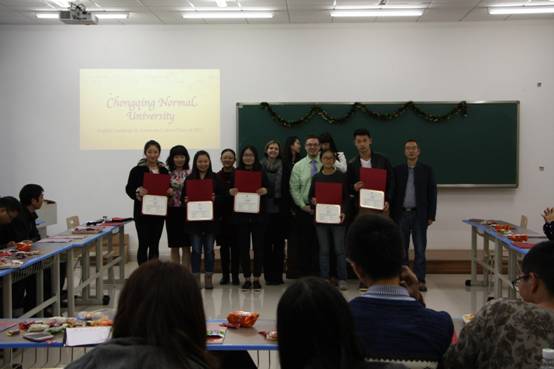 投影仪上放映着三周内学生与外教老师一起记录下的点点滴滴,同时,学院领导和老师还共同观看了同学自制的介绍重庆的特色视频。典礼结束后,同学们分别与外教亲密合影,一张张照片将永远定格这一幸福的瞬间和镌刻人生美好回忆。