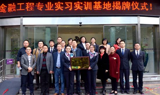 院长田盈、党委书记税强、重庆市沙坪坝融兴村镇银行行长巩伟、沙坪坝区金融工作办公室谢颜泽共同为“金融工程专业实习实训基地”进行了揭牌。参加仪式的学院领导和金融工程系教师代表与重庆融兴村镇银行领导和员工代表进行了座谈,双方围绕学生实习制度的建立、实习计划的落实、专业教师的考察学习以及研究课题合作等事宜展开了讨论,并就上述问题达成了共识。