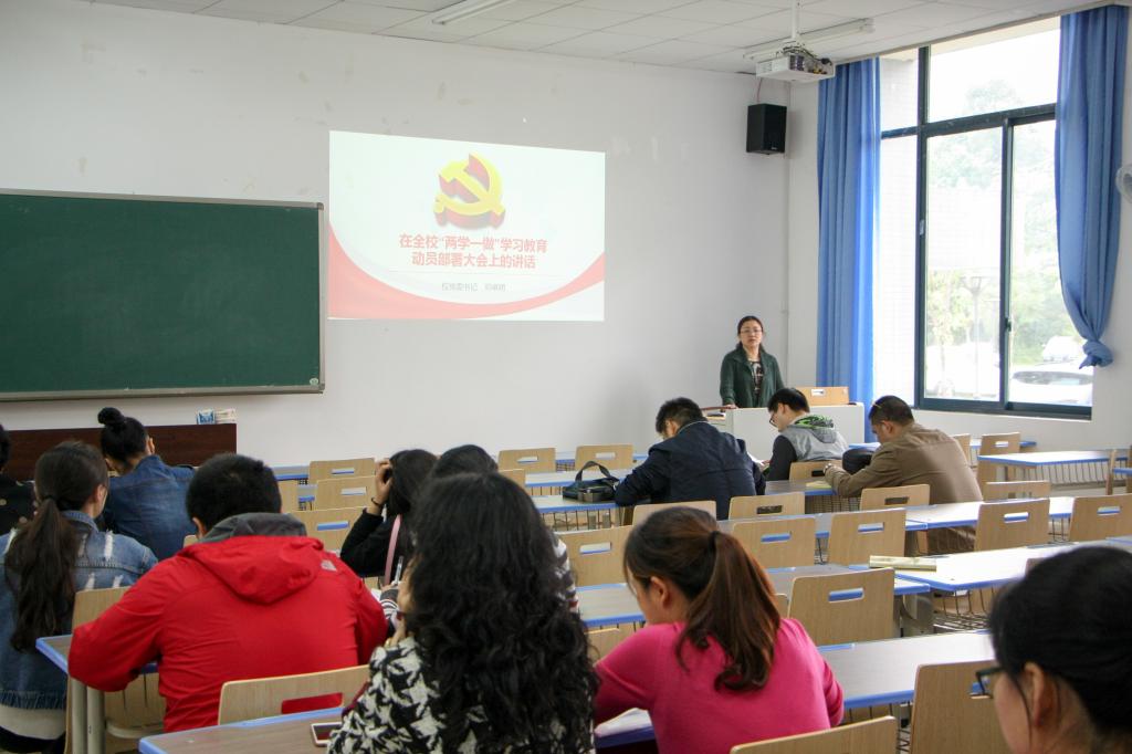 在学院楼102会议室再次针对全体教职工党员召开“两学一做”学习教育动员大会,会议由党委书记税强主持。