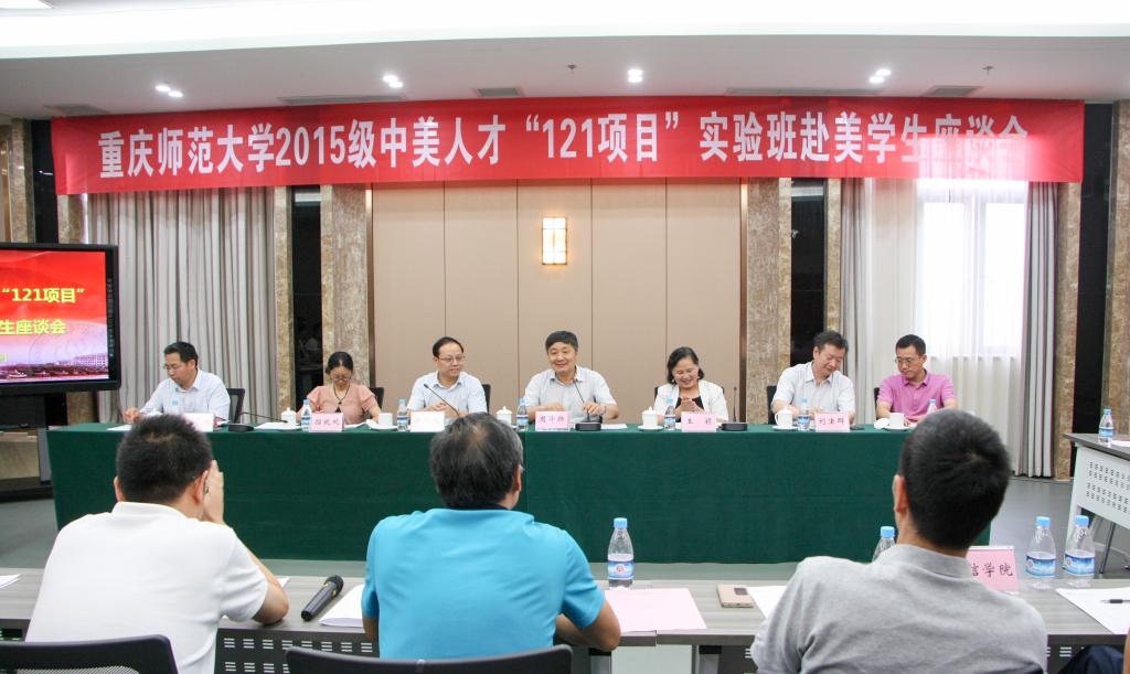 7月1日下午,我校2015级中美人才“121项目”实验班赴美学生座谈会在博雅楼502会议室召开。我校校长周泽扬教授、中国国际教育交流中心主管“121项目”的项目总监王颖以及副总监刘法群出席座谈会。学校国际处、招就处、教务处、学生处等部门负责人及伊莉讨论区
