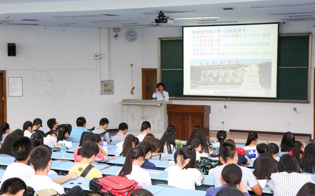 邓正琦教授先详细地讲解了世界各大学的发展概况,让经管学子在中外大学的对比中更为真切地体会到中国近现代大学的飞速发展,更为真实地了解所谓大学就是一个传授知识、探索真理、培养人才和服务社会的机构。随后邓正琦教授又围绕“读大学应该读什么”进行阐述。邓教授认为:读大学,就要读历史,在重师深厚的学术底蕴和人文情怀中陶冶情操;读专业,在丰富的理论知识中提高能力;读大师,在聆听教诲中掌握学习方法;读同学,在相互学习取长补短中合作共赢;读图书馆,在前人智慧中汲取能量。紧接着,邓教授在“大学生在学校学什么”的问题上告诫经管学子“做人应知温良恭俭让,做事应明礼义廉耻信,做学问更应对自己高标准、严要求。只有做到如此,才不失重师学子之风范,才彰显重师学子之本色”。最后,邓老师引用朱熹名言鼓励同学们“宝剑锋从磨砺出”的为学之道,并预祝同学们能够愉快的度过值得骄傲的大学生活。