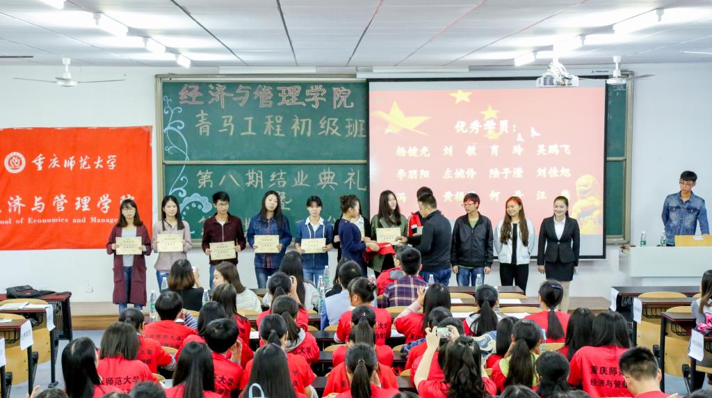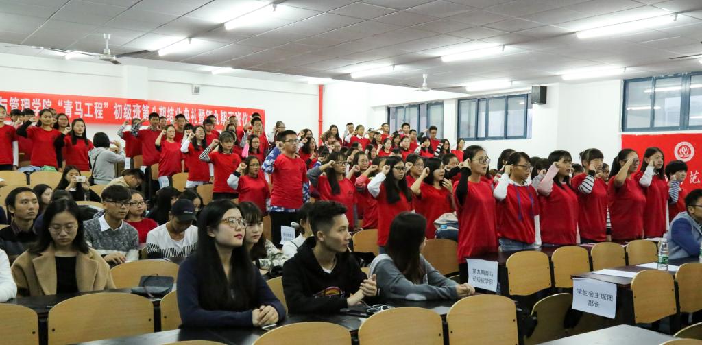 在回顾了第八期青马工程结业成果回顾的PPT演示文稿后,第八期青马学员代表肖玲为第九期青马新学员交流自己的学习心得体会。第九期青马全体学员庄严宣誓:脚踏实地,志存高远。团组织书记朱旭森为结业学员代表颁发证书,并发表讲话,希望新学员学会“读思学做”,一心向党,在规范自身前提下争做青年思想先锋,做学生行动楷模。