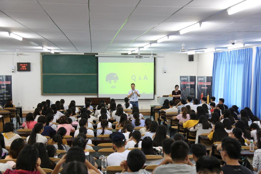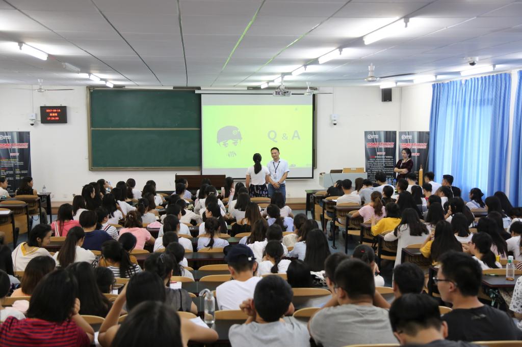 宣讲会的尾声,学生们踊跃提问,16级一名同学提出“顺丰班除了每周五必要的理论课培训外,是否还有其他课程要修?”对此王经理表示,企业对顺丰班有推荐的课程可以选修,相信大家都是有一定的学习能力的,也能够很好的完成对这些课程学习。而对于另外一名女生提出的学费问题,王经理解释:企业对顺丰班的培训都是免费的,并且还会对成绩优异的学生发放丰厚的奖学金,激励学生更好的学习。