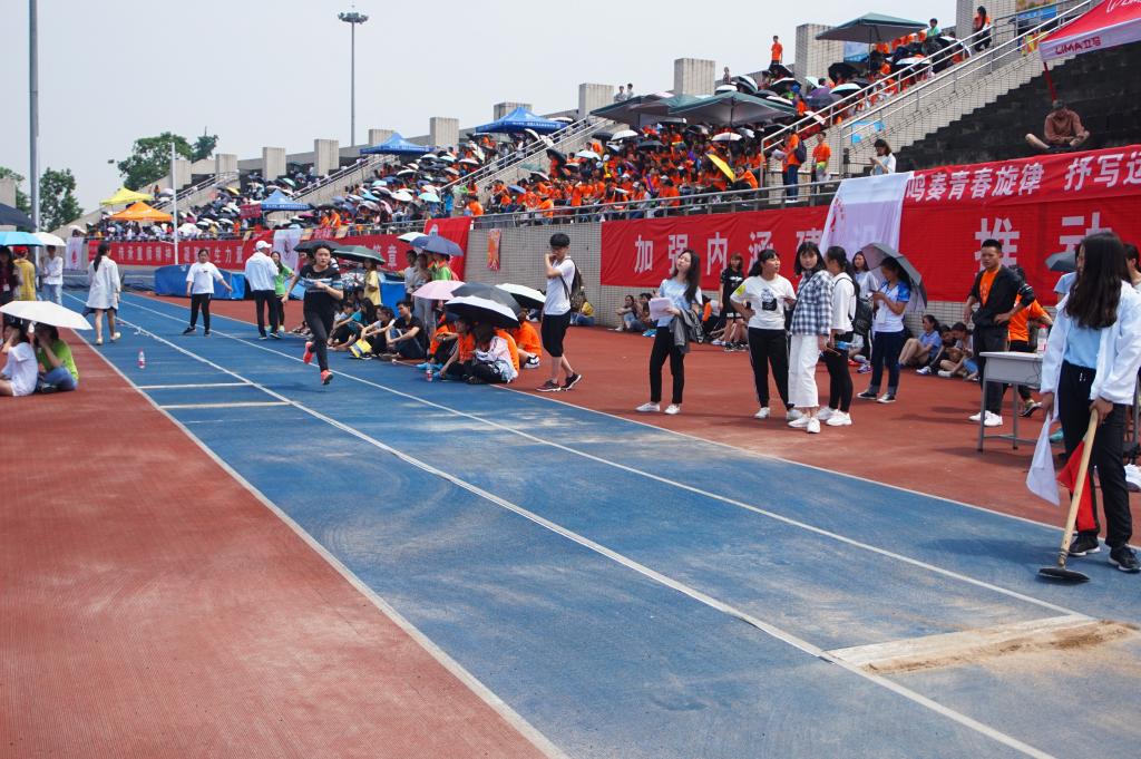 看台上的学生一直在为每个运动员加油呐喊,鼓声阵阵,经管学院士气冲天,人气学院实至名归。