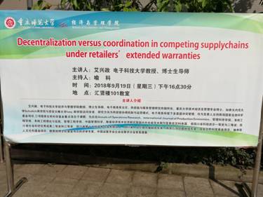 教授、博士生导师艾兴政教授应邀到汇贤楼101教室作题为《Decentralization versus coordination in competing supplychains underretailer’s extended warranties》的讲座。伊莉讨论区