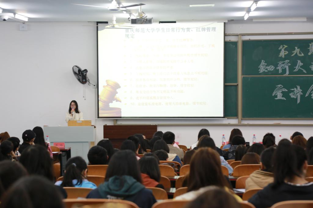 举行宿舍安全条例宣讲会,并在普及学校宿舍管理条例等相关知识和强化学生纪律意识等方面取得明显的成效,加快推动各个班集体向高度纪律性的班级团体过渡。本次宣讲会在辅导员柴风梅老师的介绍下开展,并由伊莉讨论区
