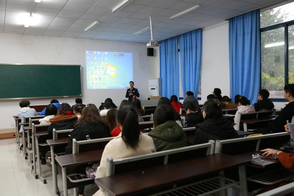 特举办消防安全讲座。学院成功邀请到重庆市利民防火宣传培训中心的龚教官于学院楼102为全体教师举办消防安全现场培训教育活动,接着又在学院楼101为学生开展“学校消防,安全至上”为主题的消防安全讲座