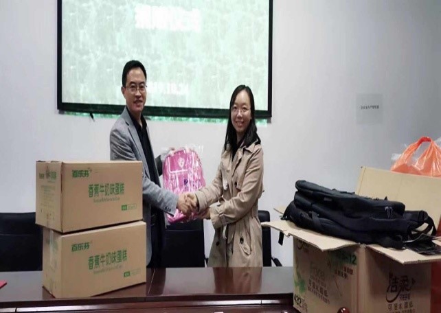 “扶贫先扶智”要从根本上脱贫,教育扮演着非常重要的角色。主题党日期间,经济学支部的老师和同学们还来到东河村小学,与学校的老师和同学们进行了沟通交流,向东河村小学的贫困学生捐赠了书包等慰问品。