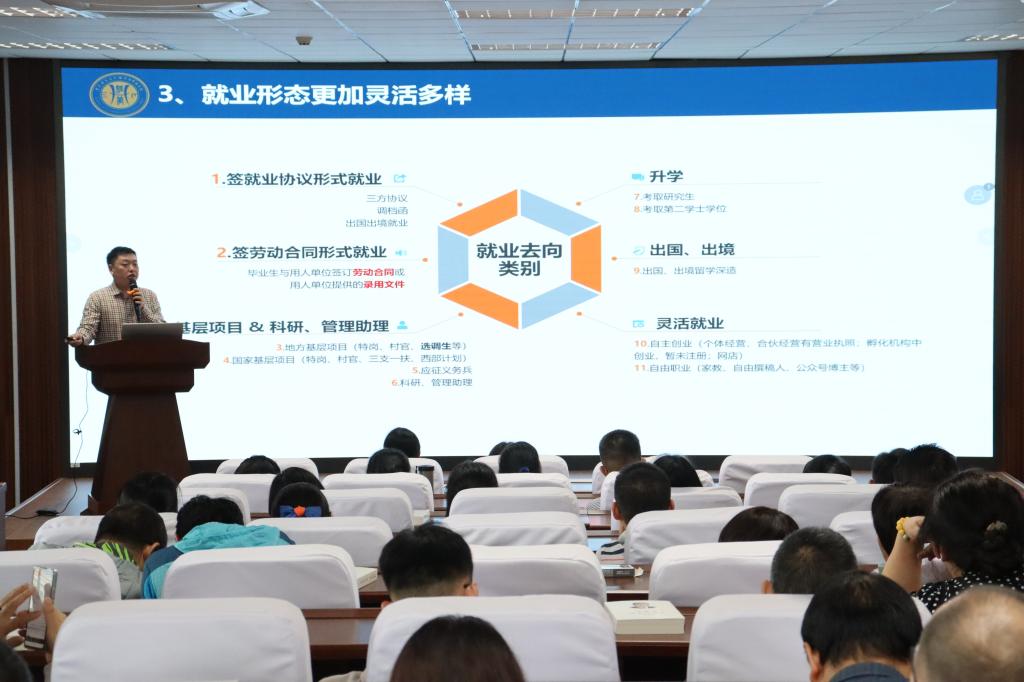 针对全面推进学生就业工作,李青松副书记总结分享2022届毕业生就业概况和特点、就业工作经验及反思,细致部署2023届毕业生就业工作思路,着重强调“就业就是最大的民生”,同时也期望“全员育人促就业,凝心聚力谋发展”。
