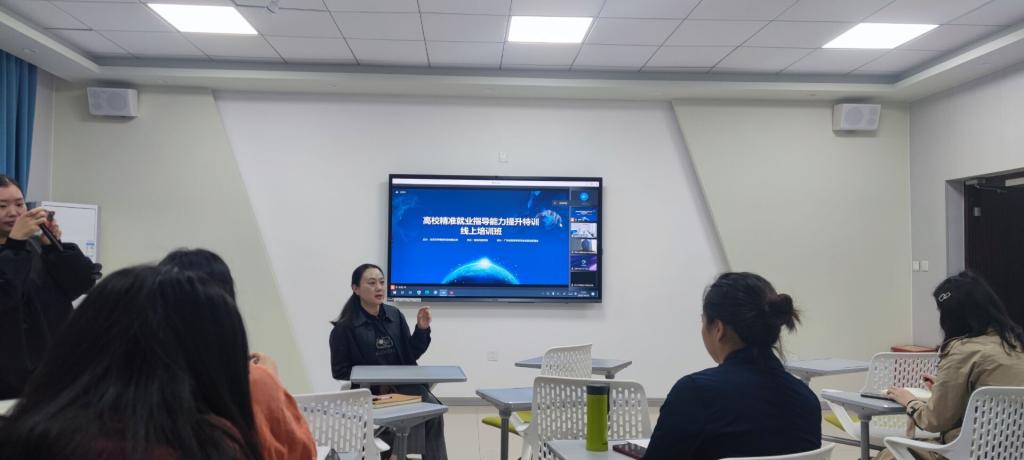 开展的高校教师精准就业指导能力提升特训由学院党委书记钟敏号召组织,学院院长、党委副书记、学工办主任、各年级辅导员及各班班主任全员通过线上或线下的方式参与。