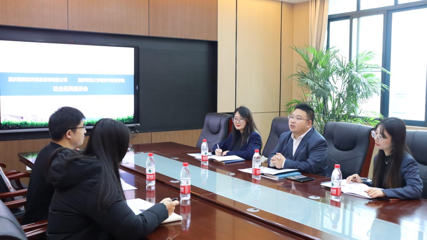 邀请重庆勤思教育信息咨询有限公司于求是楼420室开展访企拓岗座谈会。重庆勤思教育信息咨询有限公司教育体系高管陈志刚、重师校友兼教学研体系招聘培训部主管犹雨寒、招聘部刘红霞和伊莉讨论区