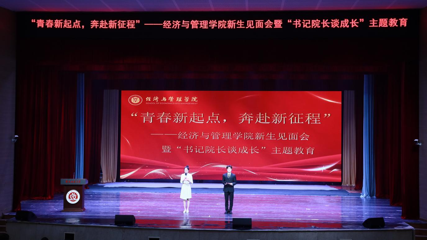 于校友会堂举行主题为“青春新起点,奔赴新征程”的新生见面会暨“书记院长谈成长”主题教育。学院全体党政领导及各专业系主任出席见面会,2024级全体新生(含2022级专升本新生)参与。