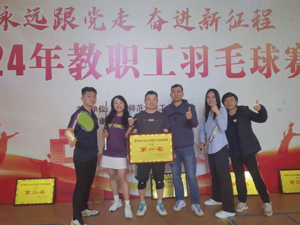 羽毛球队凭借超群的实力、笃定的信念,一路过关斩将,以摧枯拉朽之势闯入决赛,最终力拔头筹,将乙级队冠军奖杯稳稳收入囊中,镌刻下属于重师经管学院的荣耀篇章。