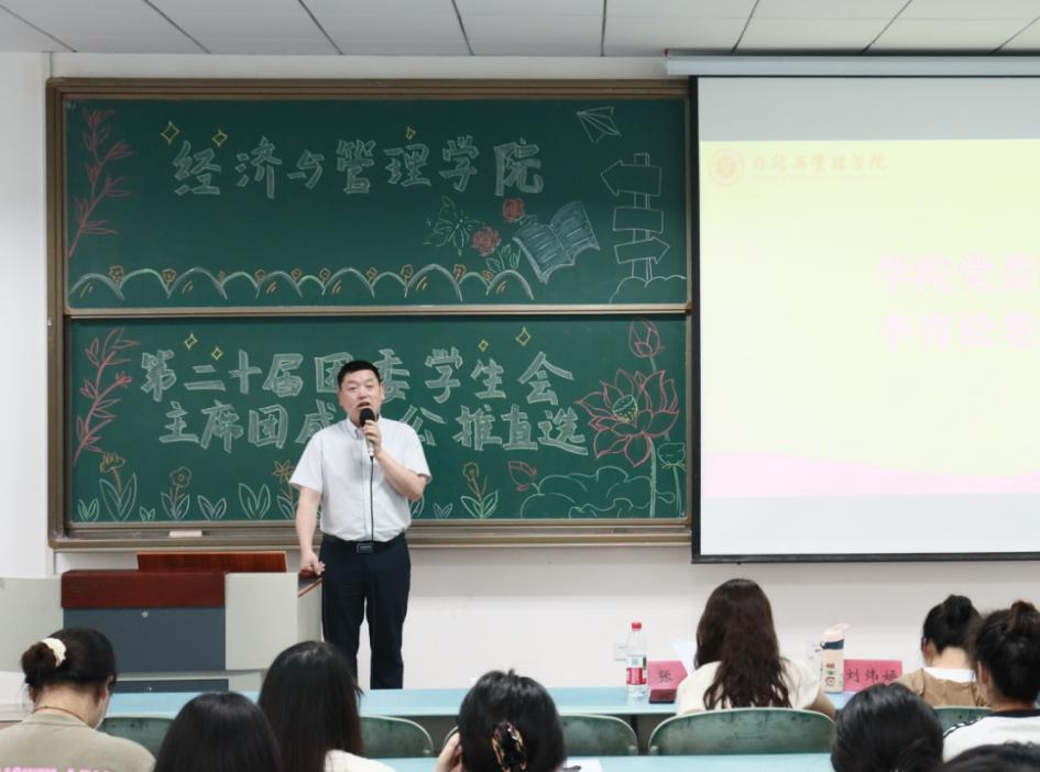 李青松作总结讲话,他强调此次公推直选是学院民主管理的重要实践,并对新一届的主席团成员提出两点期望:一是牢记学生代表使命,主动倾听同学心声,切实维护学生权益;二是增强服务意识,与学院携手搭建丰富多彩的第二课堂实践锻炼平台,助力学生提升综合素质。