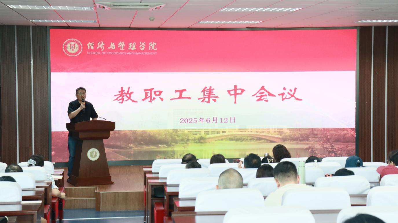 于求是楼517召开全体教职工集中会议,学院党委书记钟敏、执行院长郑景丽、副院长陈宇科、副院长段俊,党委委员任缙及全体教职工出席会议。