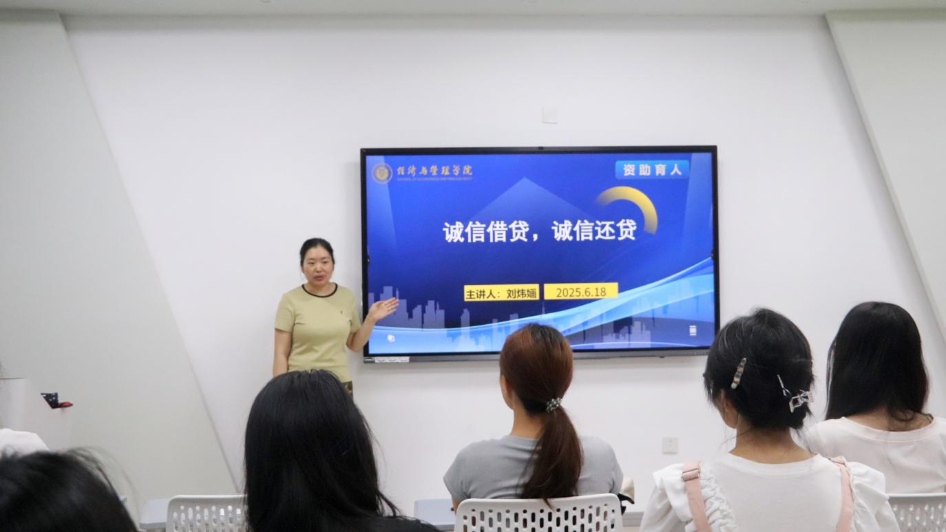 于求是楼124举办“诚信借贷,诚信还贷”主题教育活动。本次活动由2023级辅导员刘炜婳主讲,部分生源地贷款学生参与此次活动。