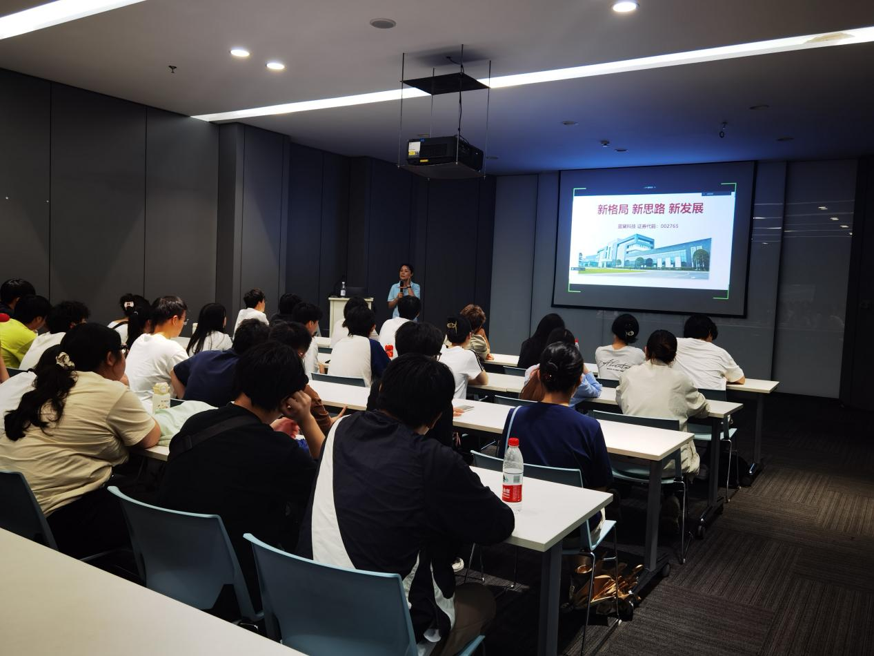 抵达蓝黛科技集团股份有限公司后,集团人力资源部徐梅总监、戴霜专员热情地接待了师生,详细地为同学们介绍了企业的发展历程、业务范围、用人理念以及伊莉讨论区等,和同学们就HR六大模块在企业的实践以及三支柱的应用进行了深入地交流。