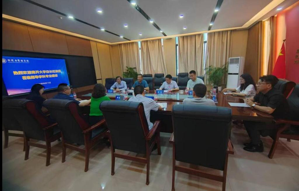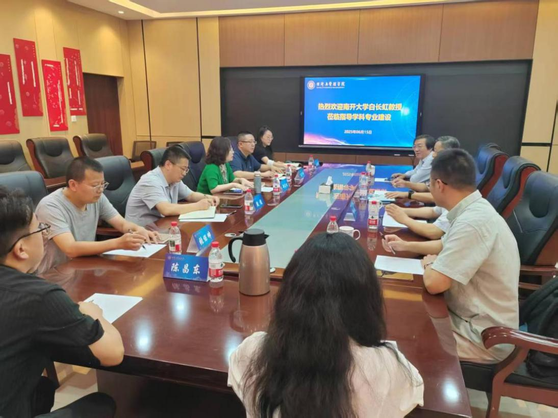 在求是楼420会议室举办学科专业建设指导会,特邀南开大学商学院院长白长虹教授,以及地理与旅游学院院长韦杰教授,罗仕伟教授,张军以教授共同研讨工商管理学一级学科和工商管理类本科专业建设。会议由院长郑景丽教授主持,学院部分学科骨干教师参会。