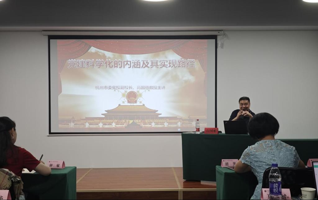 7月14日下午,杭州市委党校副校长高国舫教授为培训班成员带来了题为《党建科学化的内涵及其实现路径》的专题讲座。他系统阐述了党建科学化的提出背景、核心内涵、面临难题以及实现的基本路径,为参训学员提供了宝贵的启示和借鉴。