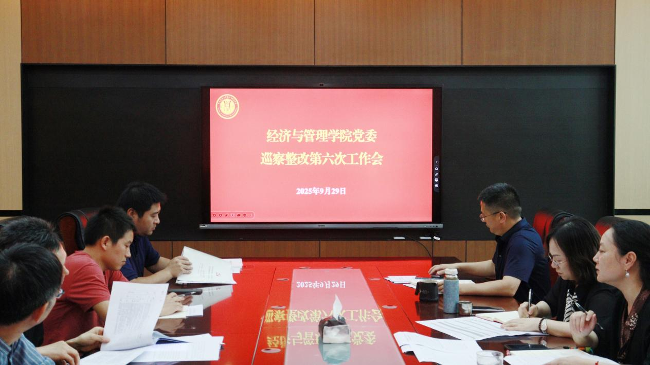 2025年9月29日,学院党委巡察整改工作组在求是楼420会议室召开第六次专项工作会议,审议整改落实情况报告及整改工作台账,并就迎接学校整改验收做进一步动员部署。工作组全体成员参会,学院党委巡察整改落实监督组成员列席会议,会议由党委书记钟敏主持。