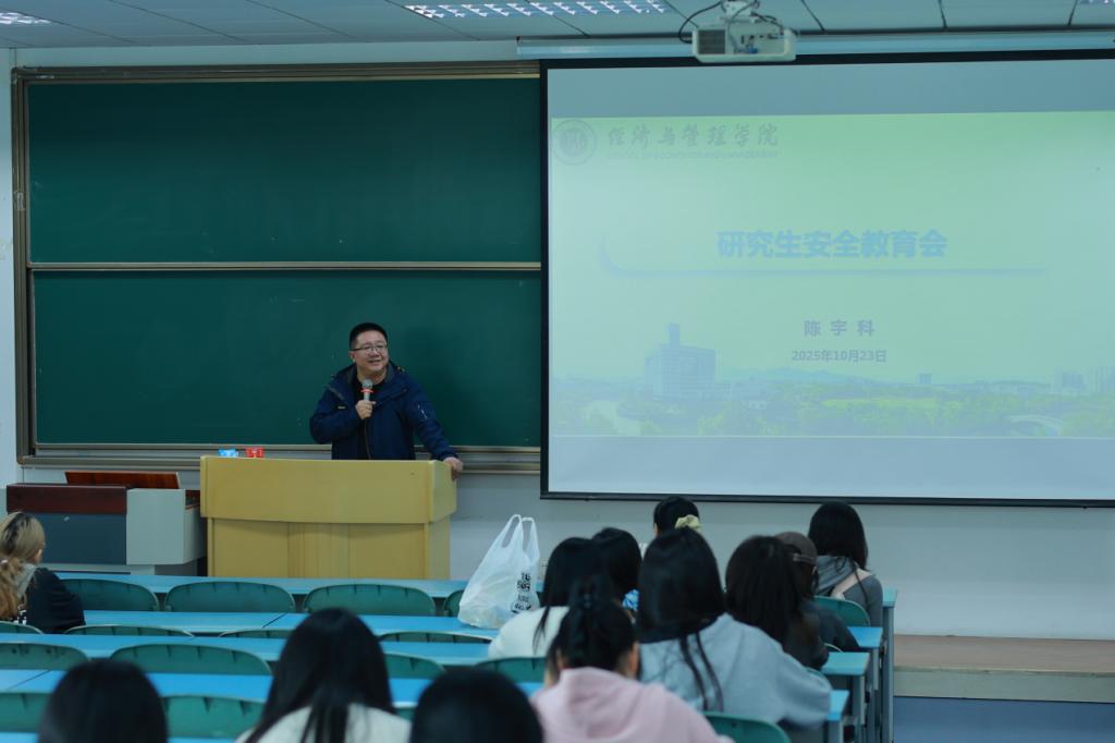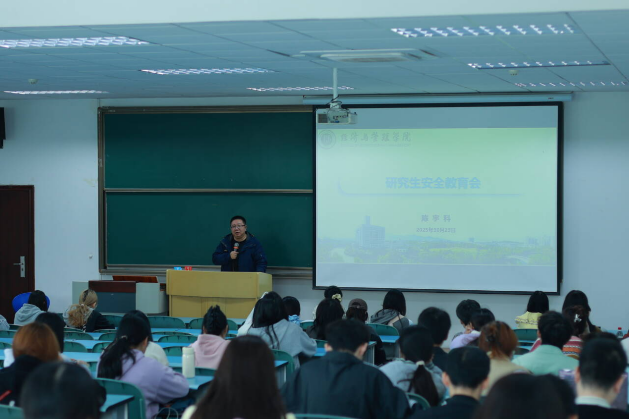 在求是楼321教室举办“研究生安全教育”主题讲座。讲座由副院长陈宇科主持,学院2024级、2025级各班班长及各寝室代表参加了此次讲座。