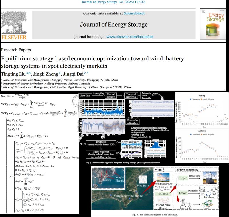 大数据管理与应用系系主任刘婷婷(第一作者)在可再生能源与储能领域取得重要进展。相关研究成果分别发表于能源领域高水平期刊 《Renewable Energy》(IF:9.1, JCR 1区,中科院一区Top)和中科院二区TOP期刊《Journal of Energy Storage》(IF:9.8, JCR 1区,中科院二区Top)。该系列研究为风电-储能系统参与电力现货市场及多品种市场交易提供了科学的决策框架与优化路径,助力国家“双碳”目标与新型电力系统建设。