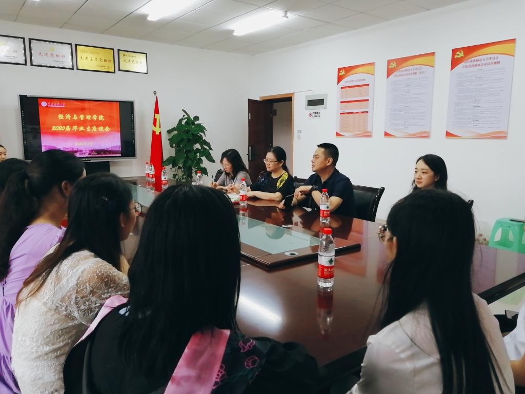 2020年6月30日上午,学院党委在311会议室召开2020届毕业生党员代表座谈会。会议由学院党委书记税强主持。学院全体领导、学生党支部书记参加会议。