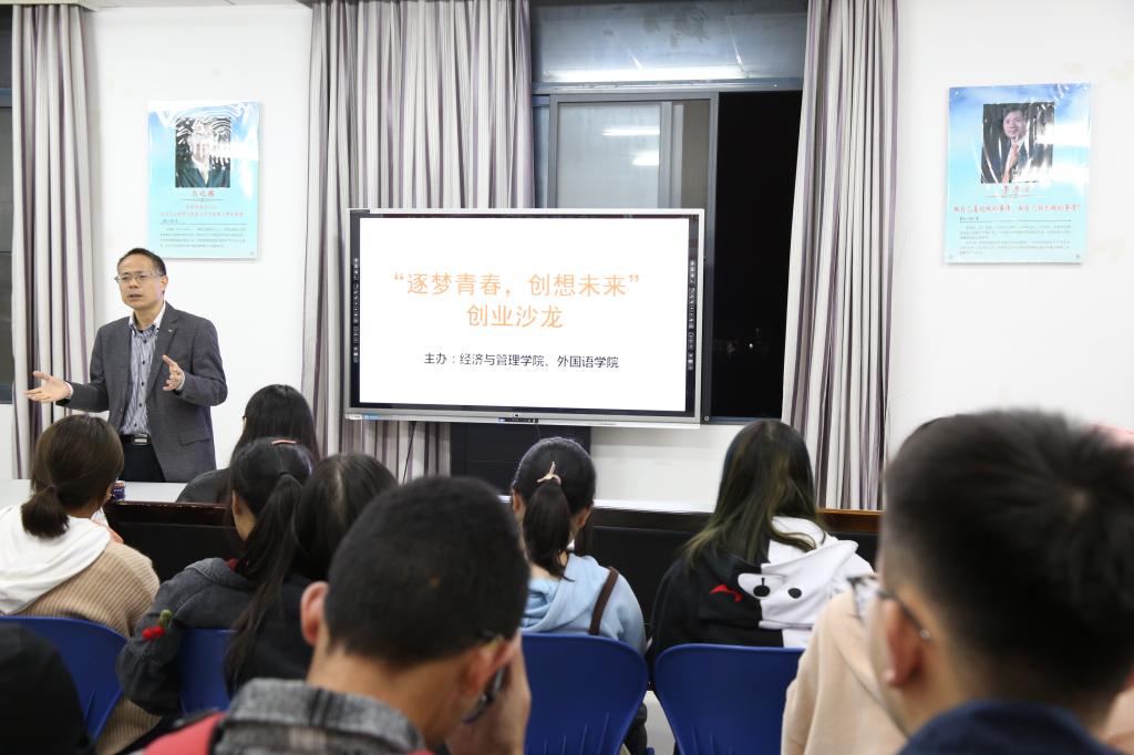 和外国语学院于学院楼X518联合举办以“逐梦青春,创想未来”为主题的创业沙龙活动。外国语学院党委副书记钟敏老师、郭婷老师、伊莉讨论区