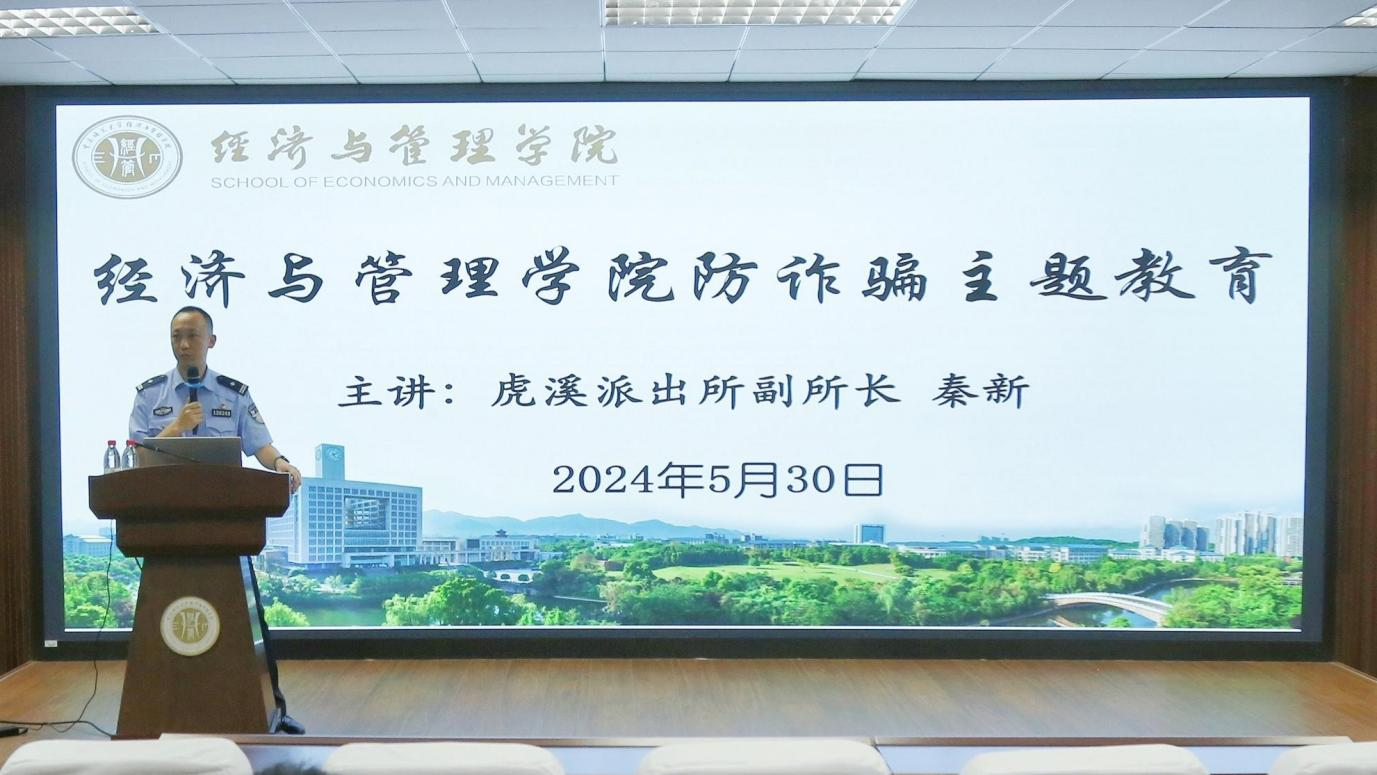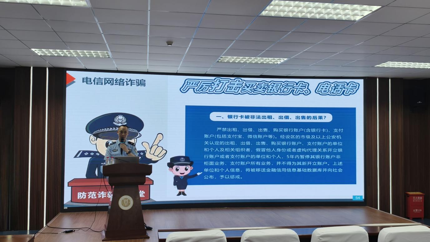 于求是楼517顺利开展防诈骗主题教育讲座,特邀虎溪派出所副所长秦新警官开展讲座。