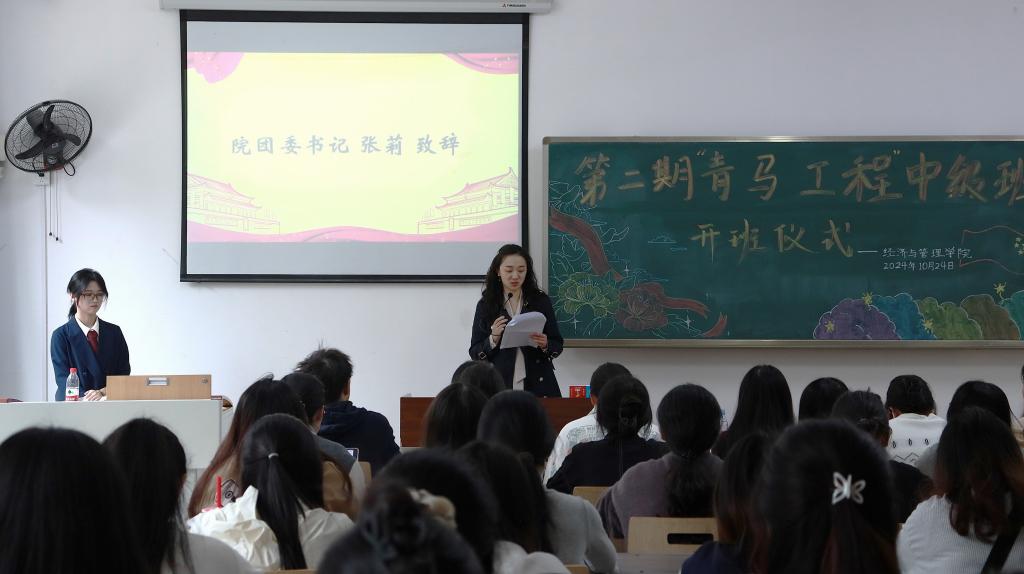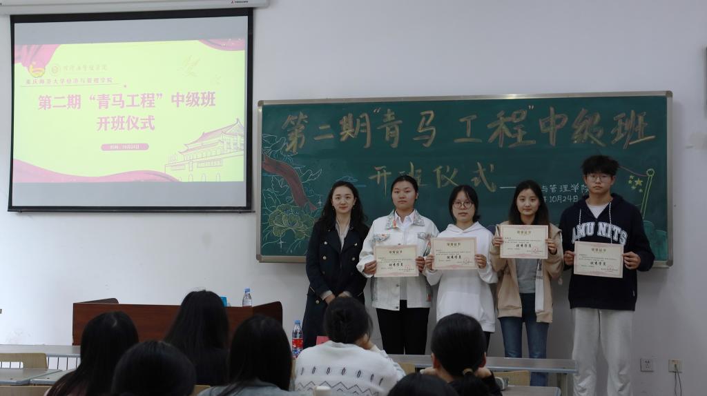 第一期“青马工程”中级班表彰仪式暨第二期“青马工程”中级班开班仪式于砺志楼2107顺利举行。学院团委书记兼学工办主任张莉,第一期青马中级班优秀学员及第二期青马中级班全体学员出席本次仪式。