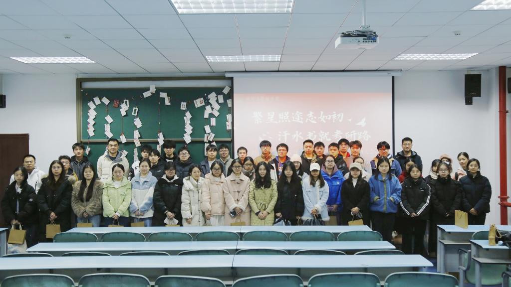 在求是楼213举行2025届考研学子慰问暨考前动员大会。辅导员唐艺珊老师及全体考研学子参加会议。
