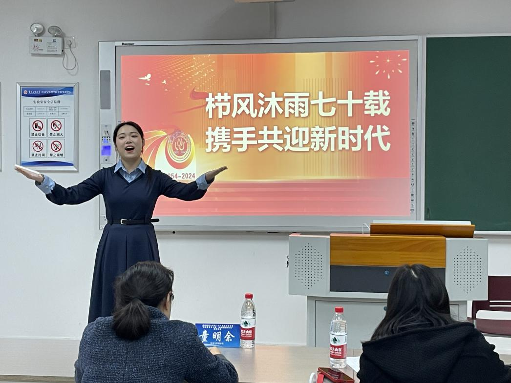 作为评委代表,任缙老师充分肯定了选手们的出色表现,指出此次演讲比赛是同学们语言表达与思想深度的集中展示,更是对母校七十载辉煌历程的真挚献礼。演讲作为一种艺术形式,承载着传递思想、激发情感的重任。她希望同学们通过语言的魅力传递自己的梦想,同时也肩负起新时代赋予的使命,成为能够深度思考、勇于实践、努力奋进的新时代青年。