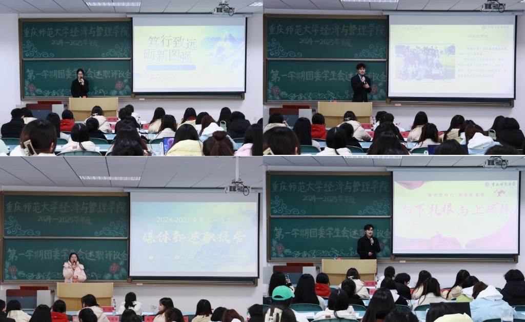 团委学生会2024—2025年度第一学期述职评议会于求是楼421召开。学院团委书记兼学工办主任张莉、团委学生会各部门主要负责人以及各年级学生代表参加。