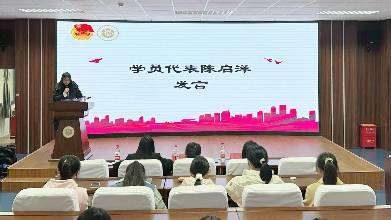 本次开班仪式在全体学员共唱中国共青团团歌拉开序幕。仪式上,李青松书记强调了青马工程的性质是时代化的马克思主义,希望同学们在思想上向党组织靠拢,在行动上要跟随党的领导,不断提高政治素质,自觉践行社会主义核心价值观,并建议同学们积极参加志愿者活动,加强课外实践锻炼。此外,李威老师宣读了录取学员名单并希望大家不负嘱托,明确青马工程的培养目标和要求,在以后的学习和社会服务中发挥作用;同时,学员代表陈启洋发言表示,学员们应当坚定信仰,做马克思主义的传承者,深入学习马克思主义理论,积极投身社会实践。仪式的最后,唐艺珊老师宣布第一期青马中级班正式开班,并鼓励学员们在中级班努力提升自己,共同营造出积极向上、严谨治学的学习氛围。