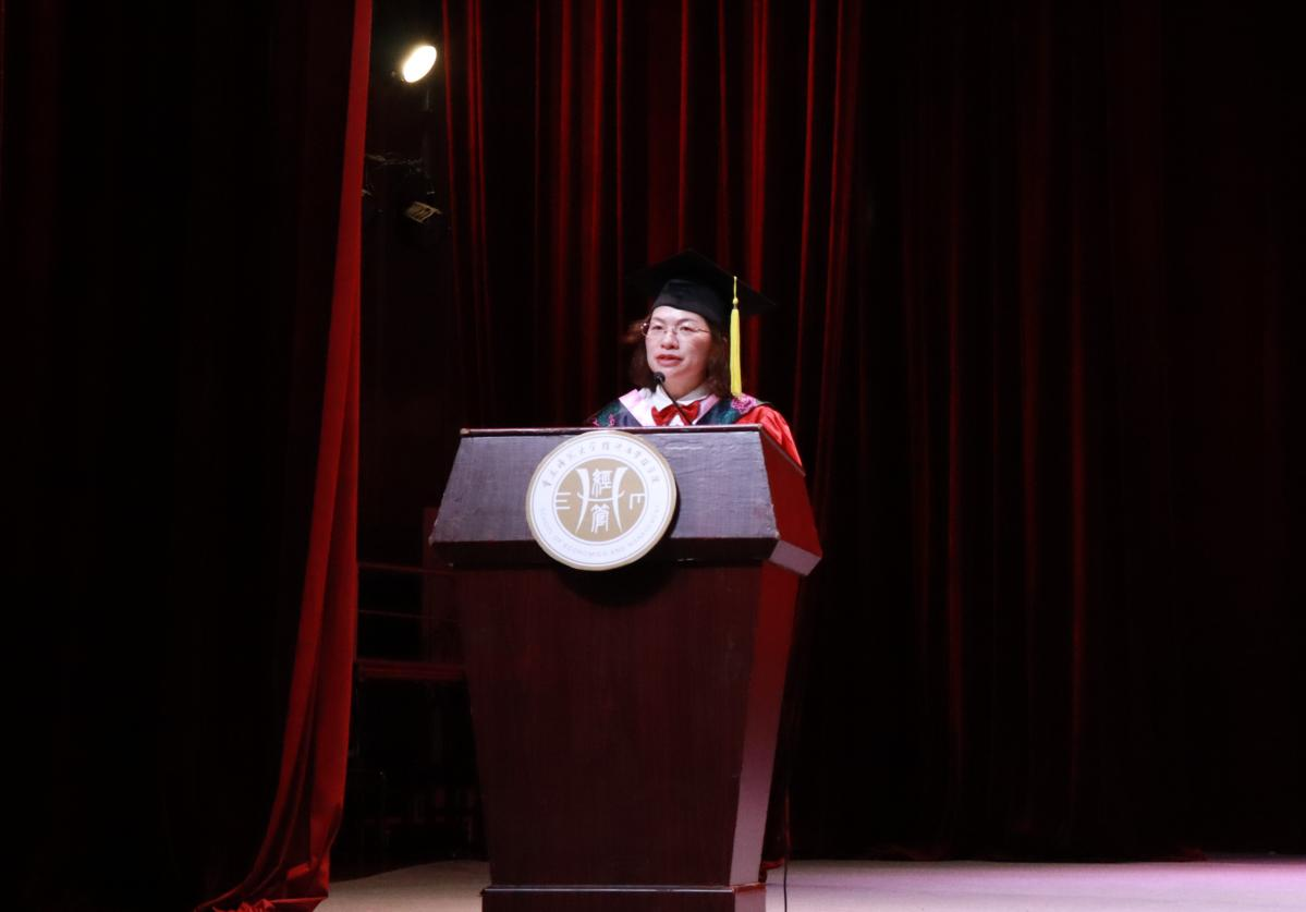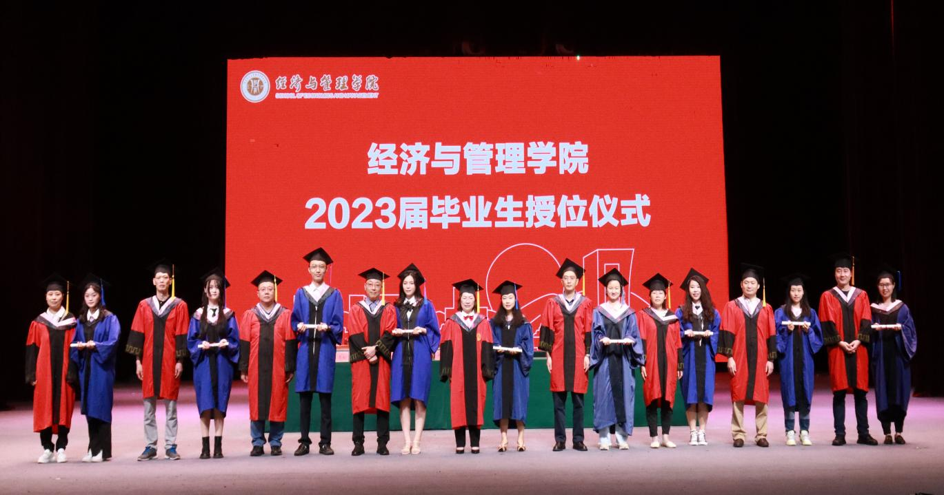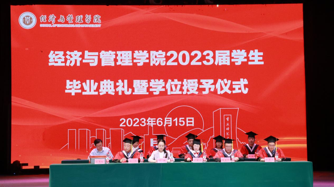 共话拳拳师者心,殷殷诉别桃李情。教授代表陈绍友教授深情寄语2023届全体毕业生,希望他们在未来的日子选择平和与沉淀、大气与作为、健康与友善,永葆赤子之心,砥砺使命担当。执行院长郑景丽教授发表致辞,她向圆满完成学业的2023届毕业生表示衷心的祝贺,同时对即将远航的毕业生们提出期望:一是厚植家国情怀,勇担使命,争做堪当民族复兴重任的时代新人;二是笃定目标,脚踏实地,勇于做难事,勤于做实事;三是终生学习,知行合一,保持旺盛的求知欲,用持续学习提高竞争力。拨穗正冠,学有所成。学位评定委员会成员为2023届全体毕业生拨穗正冠,颁发学位证书并合影留念,至此毕业典礼落下帷幕。