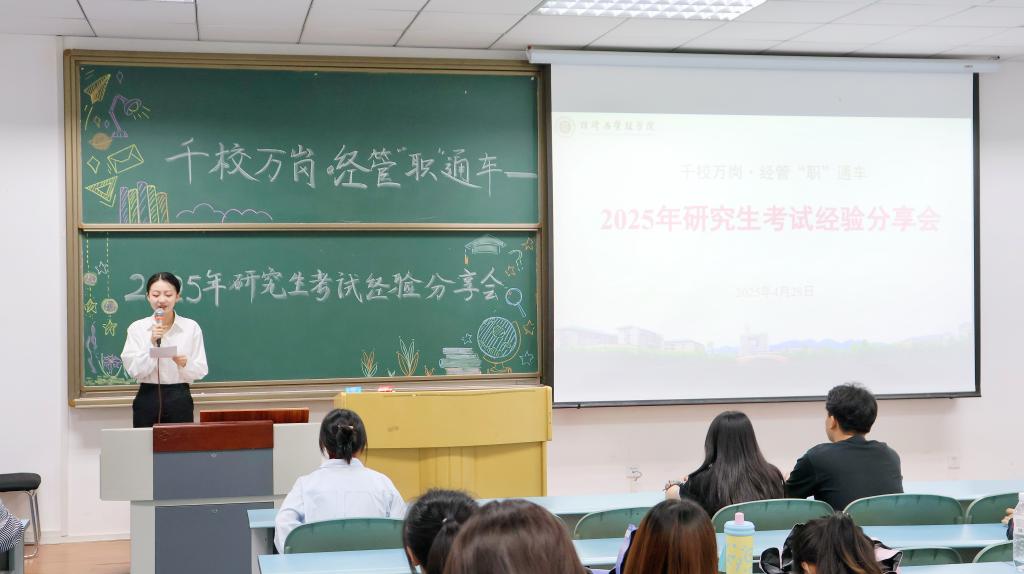 于求是楼213举办2025年研究生考试经验分享会。本次活动特邀三位考研上岸的优秀学子韩东朕、蔡福敏、李晓彬与同学们分享考研历程与心得。