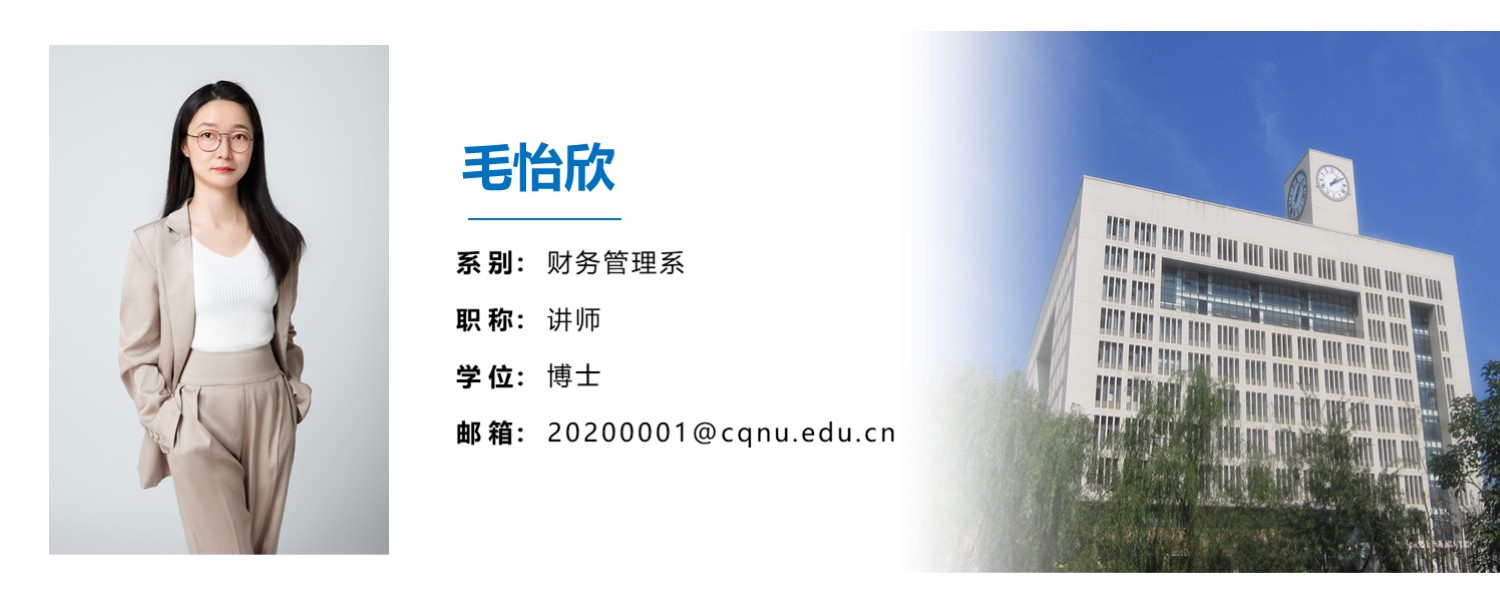 毛怡欣,女,汉族,1989年8月生,博士,讲师。主要从事财务管理专业的研究与教学。主讲课程有《会计学》、《会计电算化》、《宏观经济学》、《创业管理》等。