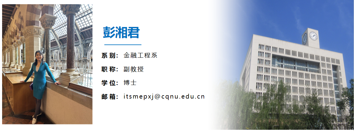 彭湘君,女,汉族,博士,副教授,硕士生导师,国家留学基金委公派英国University of East Anglia(2023-2024)、美国Troy University访问学者(2017-2018),2020年伊莉讨论区 青年拔尖人才,重庆区域经济学会理事。