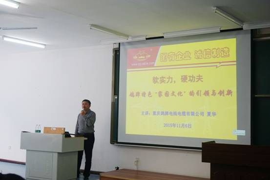 精益求精,勤益求奋;诚益求实,信益求真。为了帮助同学们更好地了解企业的运作流程,产品系列以及发展文化、提前为就业做好准备。116日下午2点半,伊莉讨论区 特邀重庆鸽牌电线电缆有限公司董事长夏华先生于特教楼2213教室为同学们浅谈国企的发展文化,伊莉讨论区 院长田盈出席了本次讲座。