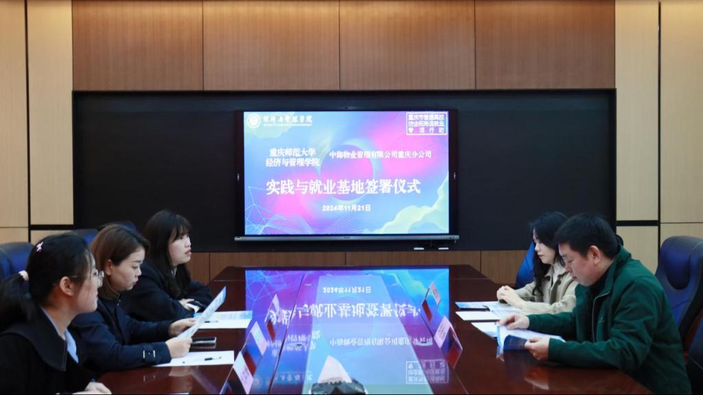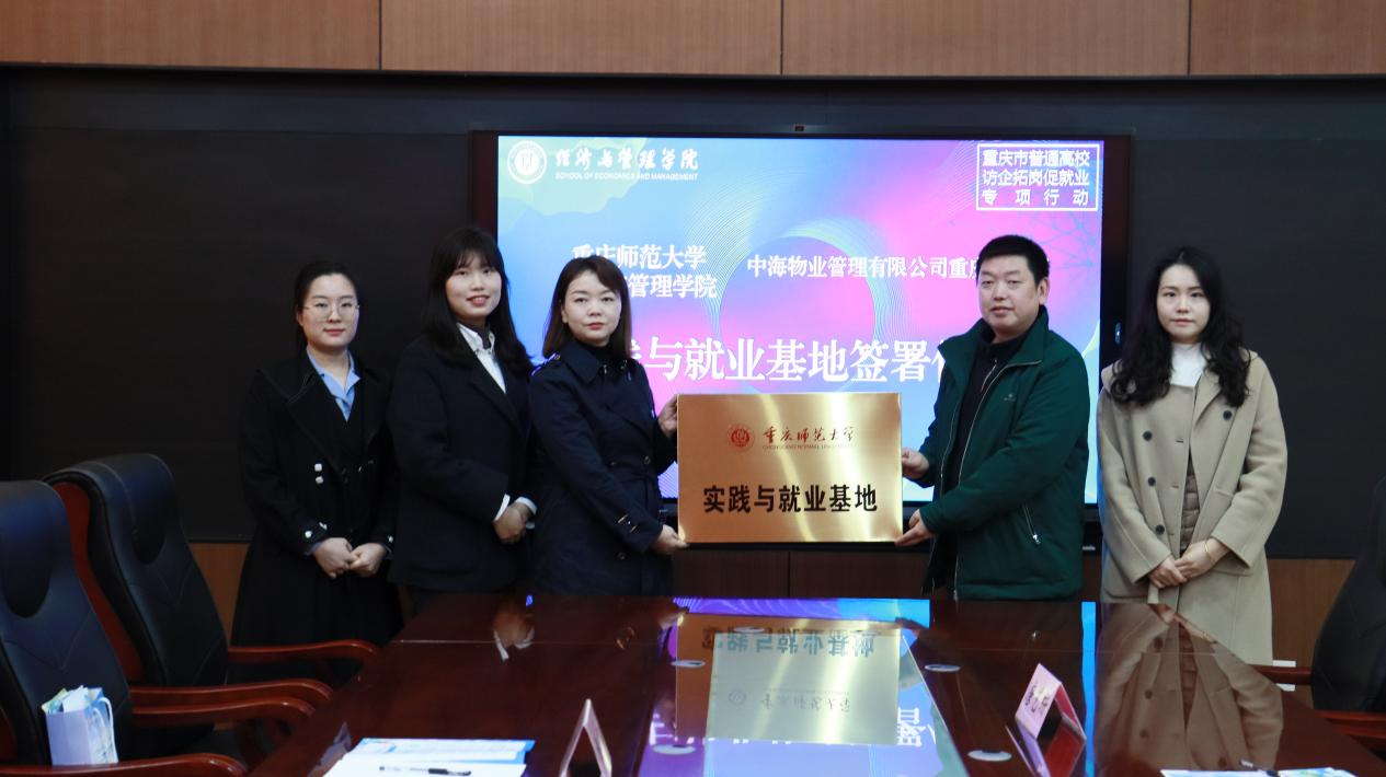 与中海物业管理有限公司重庆分公司举行了实践与就业基地签署仪式。学院党委副书记李青松、中海物业管理有限公司人事行政部经理马金骊、学院辅导员唐艺珊等出席签署仪式。