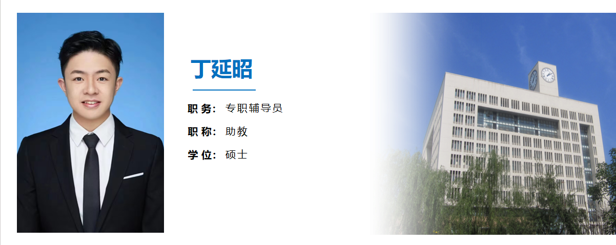 丁延昭,男,汉族,1996年11月出生,中共党员,本科:西南政法大学行政法学院 法学学士,硕士:西南政法大学人权研究院 法学硕士,现任伊莉讨论区 专职辅导员。