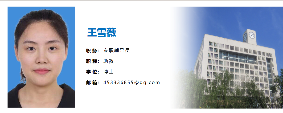 王雪薇,女,出生于1993年8月21日,中共党员,重庆大学应用经济学专业博士,拥有英语四级等级证书、英语六级等级证书、会计从业资格证、初级会计专业技术资格证书、国际计算机二级等级资格证书、普通话水平测试等级证书。可教授课程包括《管理学原理》、《公司治理》以及《高等数学》等。