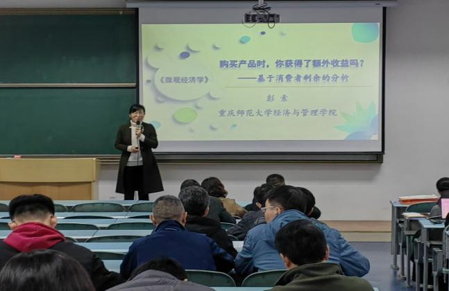 彭素老师以《微观经济学》中消费者剩余、陈昌东老师以《市场调查与预测》中实验设计为教学内容进行课堂教学展示。两位老师课程设计巧妙,灵活运用课堂游戏、案例分析、课堂讨论、知识图谱、图形分解等多种教学方式组织教学,并将课程思政自然融入到知识点讲授和案例分析中。整个课堂吸引力强,课堂气氛活跃,不断启发学生思考探索,讲授内容深入浅出,教学效果好。课后学院教师就两位老师的教学进行了评价,并进行相互交流。