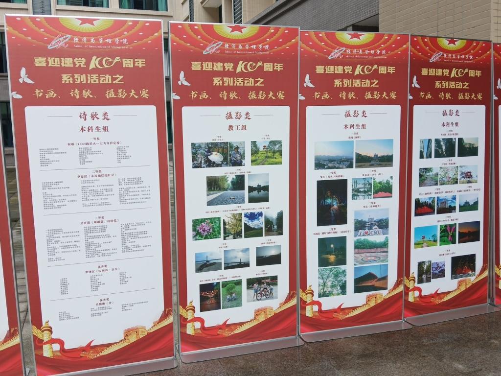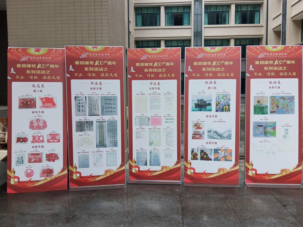 比赛期间,学院师生积极提交优秀参赛作品,评委组对各参赛选手的作品进行评分,最终评选出优秀绘画作品9幅,纸艺画作品29幅,诗歌作品9篇,书法作品26幅,摄影作品40幅。经学院组织评委认真评选,产生教工组一等奖6名、二等奖5名、三等奖3名;研究生组一等奖4名、二等奖4名、三等奖3名、优秀奖4名;本科生组一等奖8名、二等奖15名、三等奖22名、优秀奖33名,并将优秀作品于求是楼一楼进行展览。
