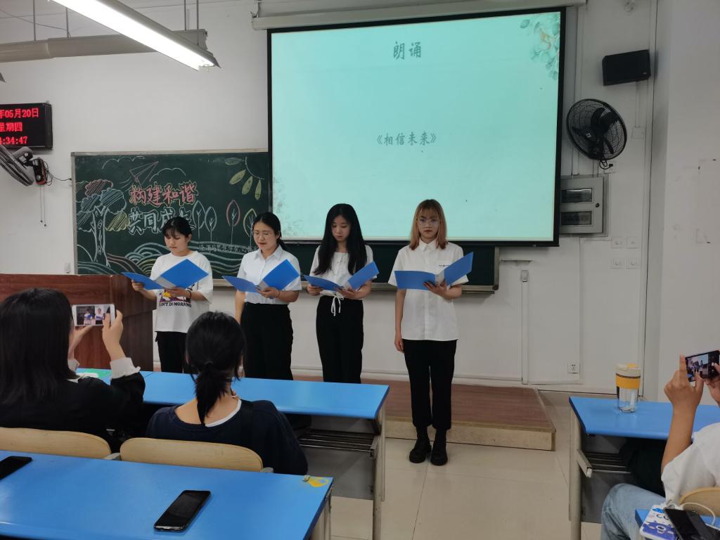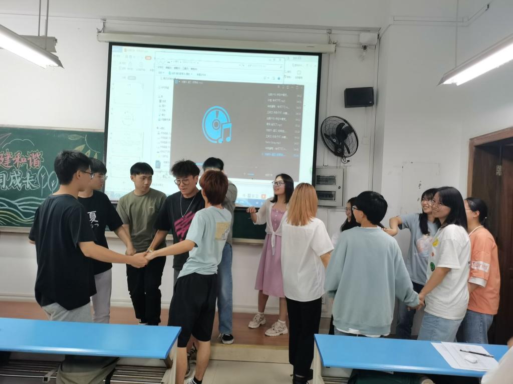 此次活动以《相信未来》朗诵表演开篇,表演者声情并茂的朗诵点燃了同学们的激情;“游戏锤锤锤”既是对同学们反应灵敏程度的考验,也是对团队合作默契度的提升;13人的大合唱更是带动了活动的氛围;“你画我猜”的游戏,同学们相互配合,大胆猜测,学会了有效沟通;“心有千千结”使同学们不断地尝试和探索,利用集体的智慧来解开“千千结”;最后的“男生女生大PK”环节,更是激发了同学们的参与热情,将本次活动推向高潮。同学们在欢声笑语中拉近了彼此间的距离,也提升了团队合作意识。