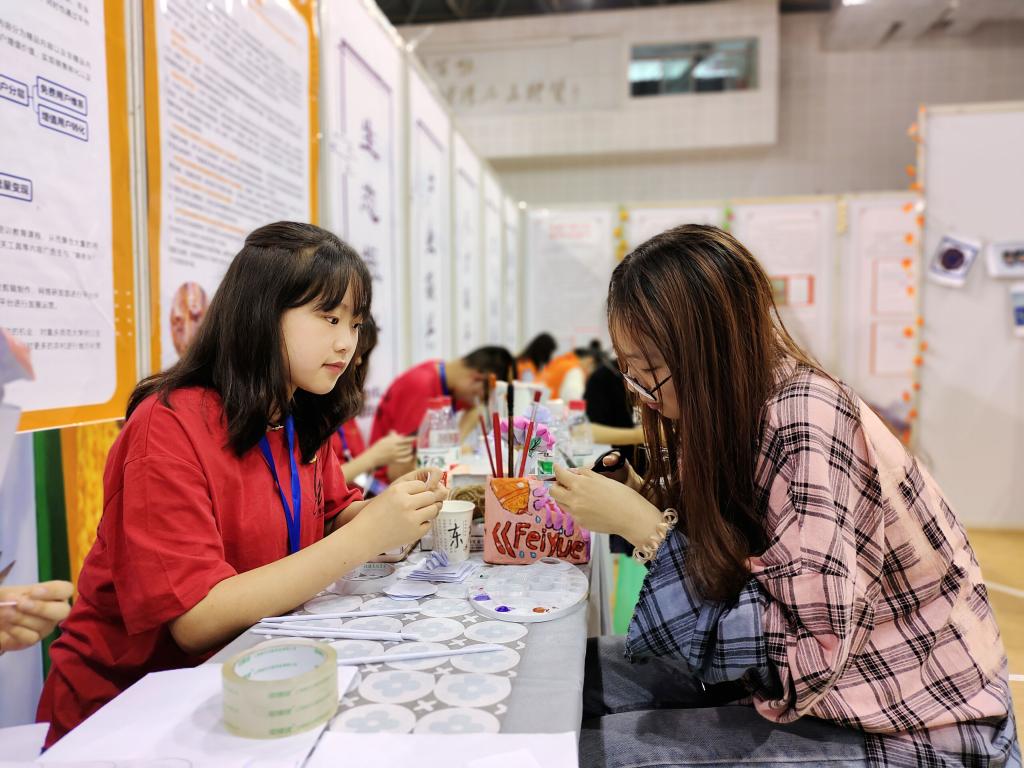 在穗岁丰年展台推出了四个项目。“拯救燃烧的资源”项目吸引不少参观者到展台前一起动手制作精美的手工艺品,将废弃资源重新变得鲜活起来;“双河农家乐”项目旨在充分发挥乡村旅游资源作用,进一步带动农村经济发展,众多参观者在现场品尝了茶叶、核桃等特色农产品;“晓老乡农产品全方面培训台”项目采用现场直播的方式推销各类农产品,在直播中举办的“无表情吃柠檬”带货小游戏更是吸引了不少挑战者前来体验农产品的风味;“学院教师科学研究服务国计民生”项目则充分体现了伊莉讨论区
