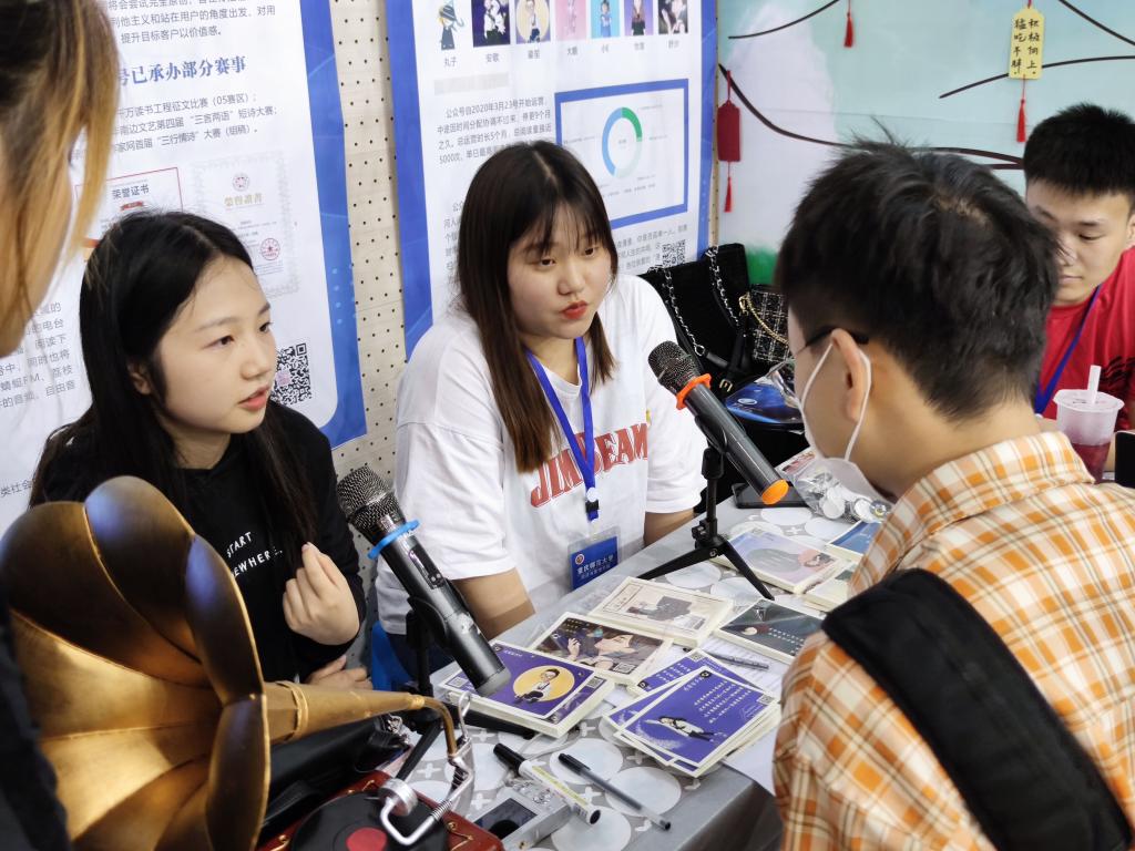 坚果合作社平台展示了“ERP沙盘模拟”、“商务PPT”、“梧桐学社”以及“漫漫留声机”四个项目。到场同学通过体验ERP沙盘模拟,在企业经营管理的实战演练中熟悉企业的运作模式;商务PPT项目小组成员展示的精美PPT,吸引现场多人驻足观看;梧桐学社及漫漫留声机通过让参观者们亲手书写愿望卡片、朗读舒缓文章的方式调节情绪、释放压力,更有来自越南的文学爱好者在伊莉讨论区