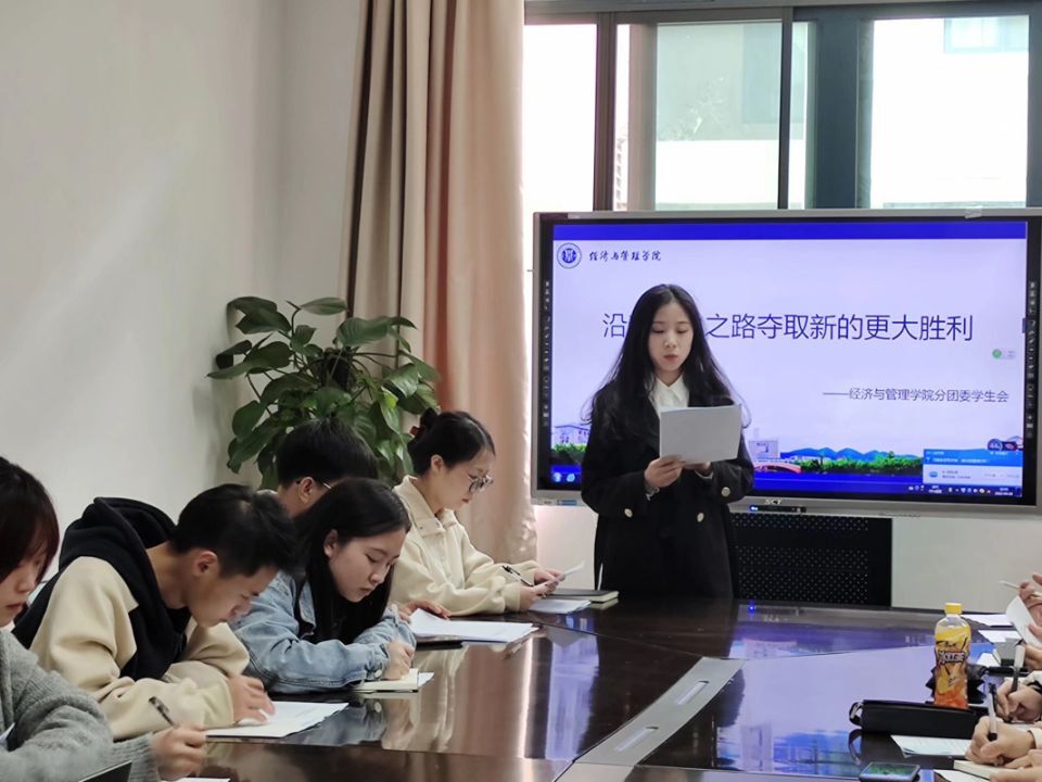分团委书记张莉老师带领学生会学生骨干学习了习近平总书记2022年全国两会重要讲话精神。