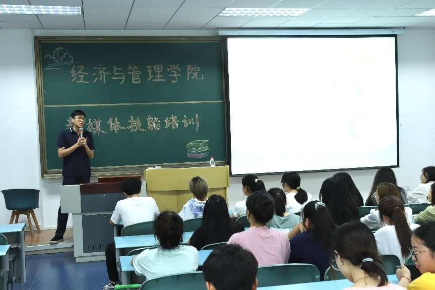 于求是楼321教室顺利开展新媒体技能培训大会,本次培训特邀校团委青年发展科科长邸少华老师为全体学生讲授新媒体运营的专业知识和技能,新媒体中心负责人丁延昭老师、学院新媒体部门全体成员及部分学生参加。